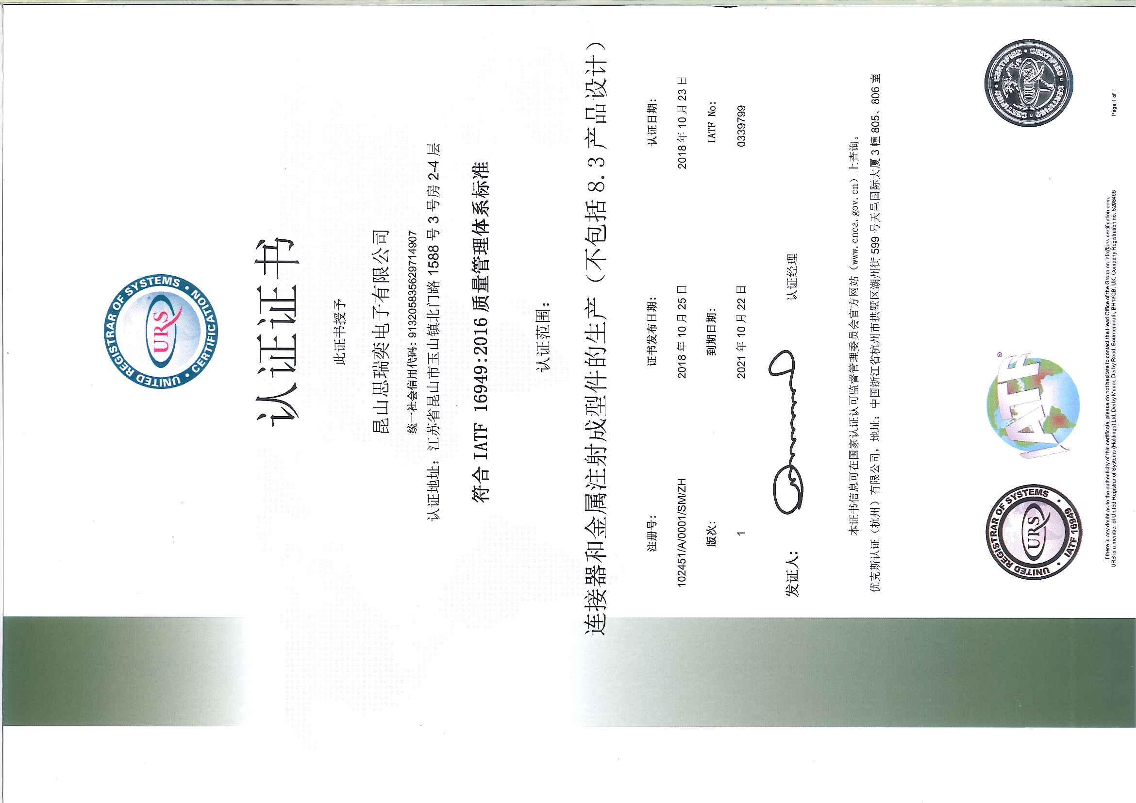 思瑞奕電子有限公司成立于2010年10月,注冊資金7500萬人民幣,總部位于江蘇省昆山市,在重慶、江蘇東臺、江蘇太倉設(shè)有分廠,公司于2011年通過ISO9001/ISO14001認證,2013年通過高新技術(shù)企業(yè)和TS16949(IATF)體系認定,2016年先后通過知識產(chǎn)權(quán)管理體系認證、安全生產(chǎn)標準化認證,2017年獲頒江蘇省民營科技企業(yè)、2018年先后獲得蘇州市人民政府認定企業(yè)技術(shù)中心、科技部認定中小型科技企業(yè)、江蘇省最具成長性高科技企業(yè)、2020年獲得江蘇省人民政府認定企業(yè)技術(shù)中心、2021年獲得蘇州市瞪羚計劃入庫企業(yè)、江蘇省省級工程技術(shù)研究中心、江蘇省專精特新中小企業(yè)等榮譽稱號......